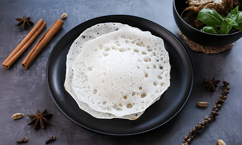 Thin lacy pancakes made with fermented rice and coconut.